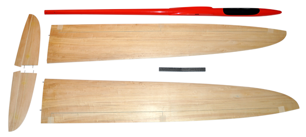 Flügel Styro-/Schwarzpappelfurnier mit GFK/CFK Einlagen, ausreichend dimensionierter Holm und CFK Rechteck – Steckung