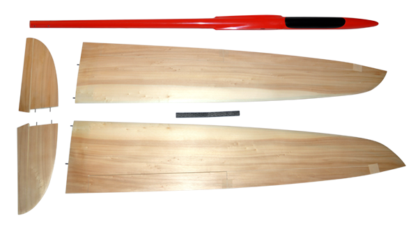 Flügel Styro-/Schwarzpappelfurnier mit GFK/CFK Einlagen, ausreichend dimensionierter Holm und CFK Rechteck – Steckung
